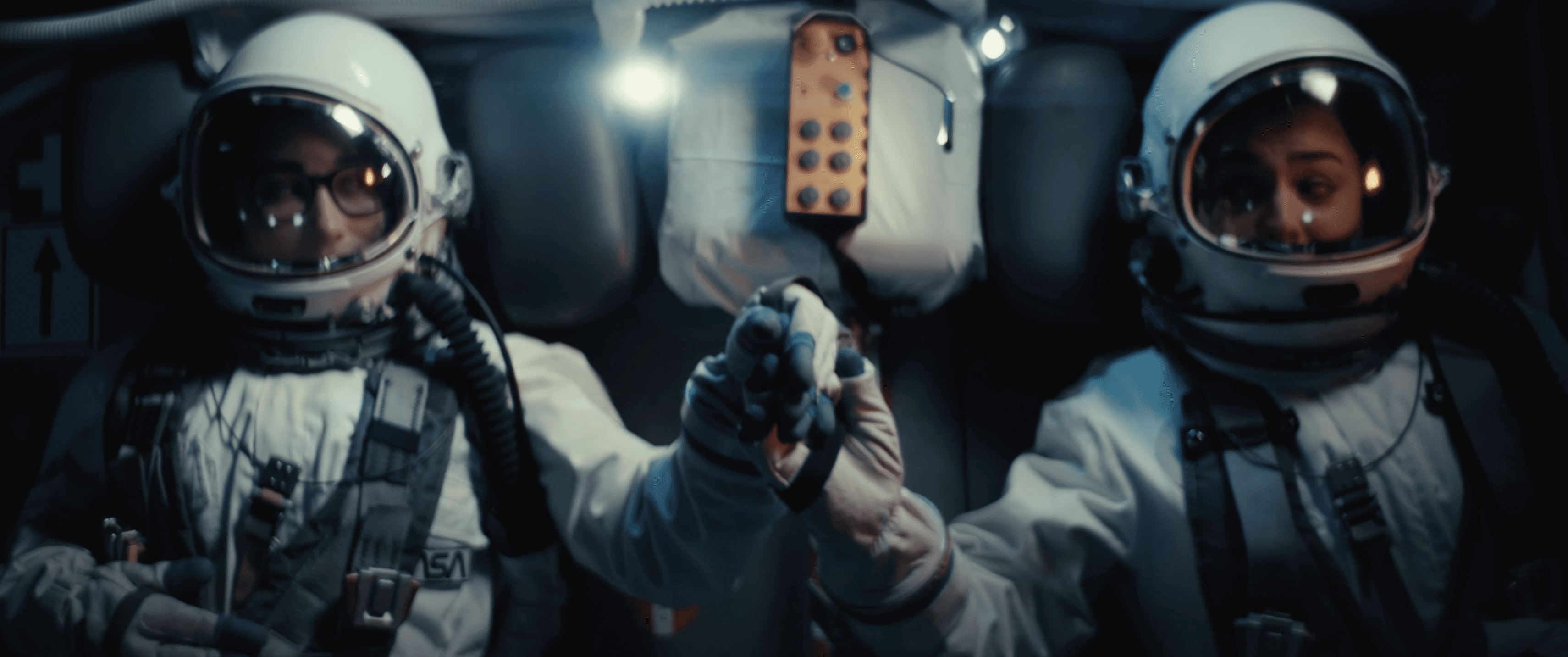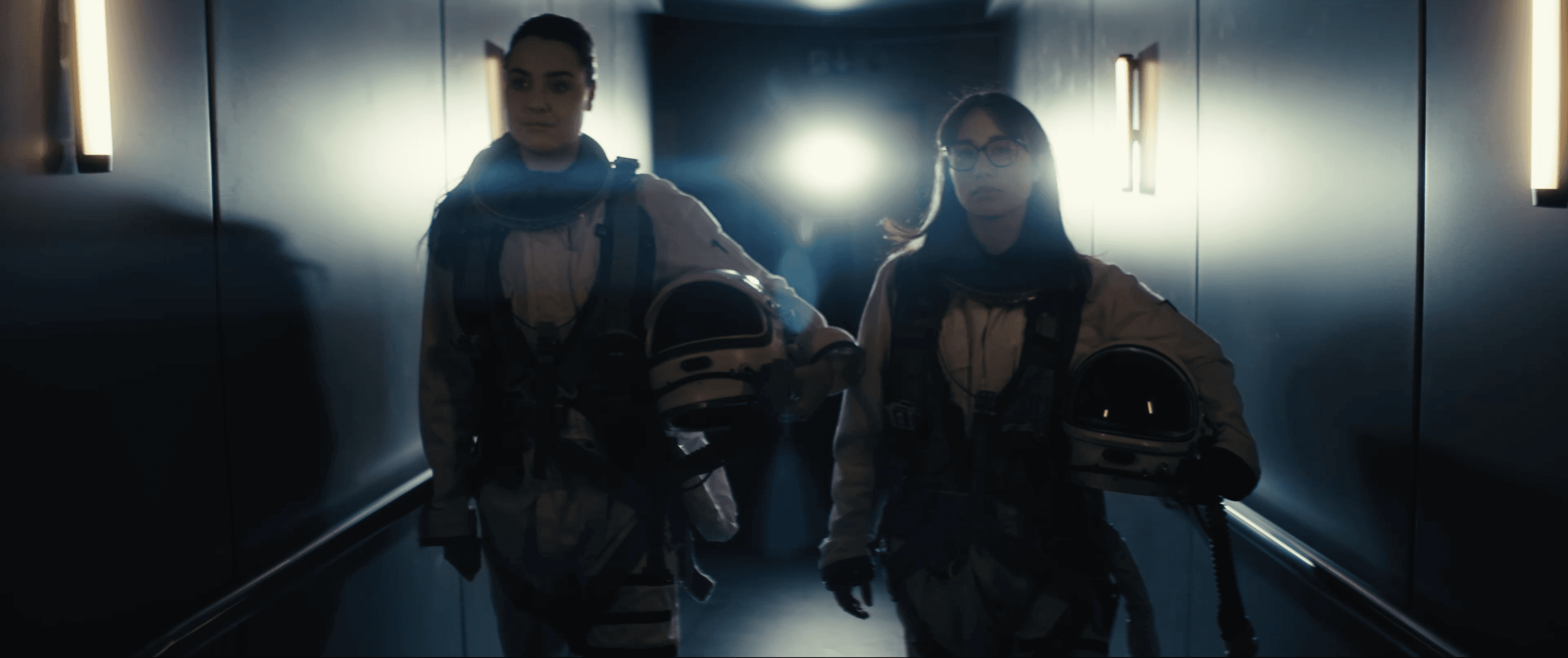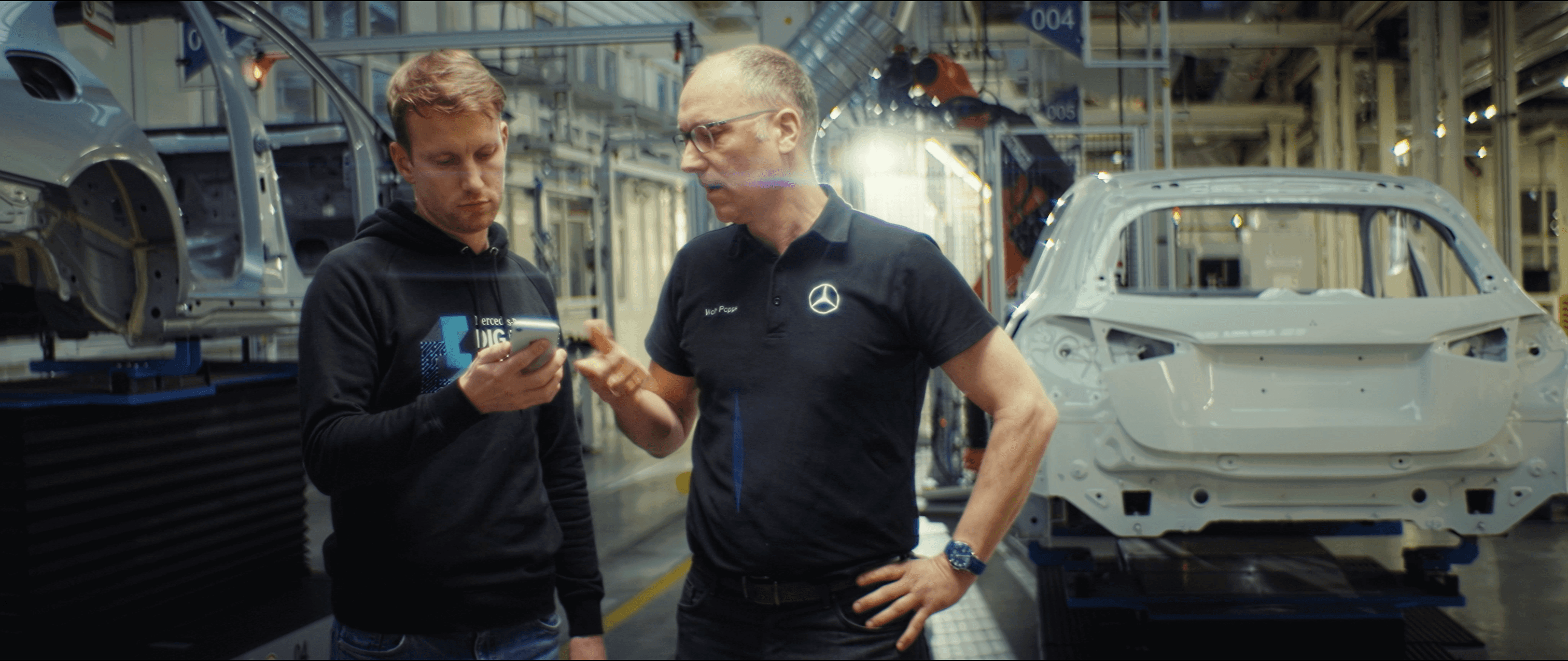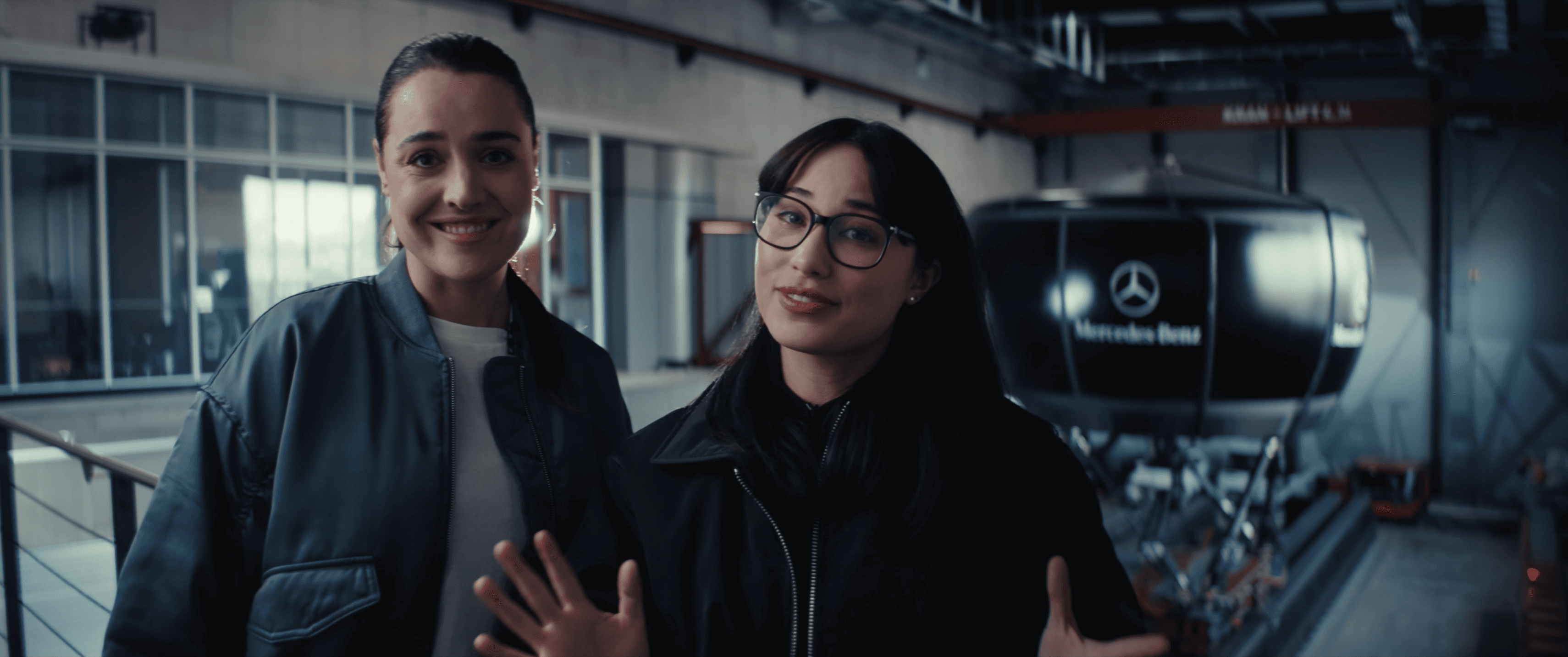 This episode featured one of our most ambitious creative challenges: a last-minute decision by director Oliver Wergers to transform the massive Mercedes-Benz Driving Simulator into a UFO. To bring this vision to life, we shot an elaborate opening sequence inspired by 2001: A Space Odyssey, featuring Becky and Elli as astronauts boarding the "craft." This required complex lighting setups, masterfully executed by our gaffer Juri Beythien, to create an otherworldly atmosphere within a technical hall.